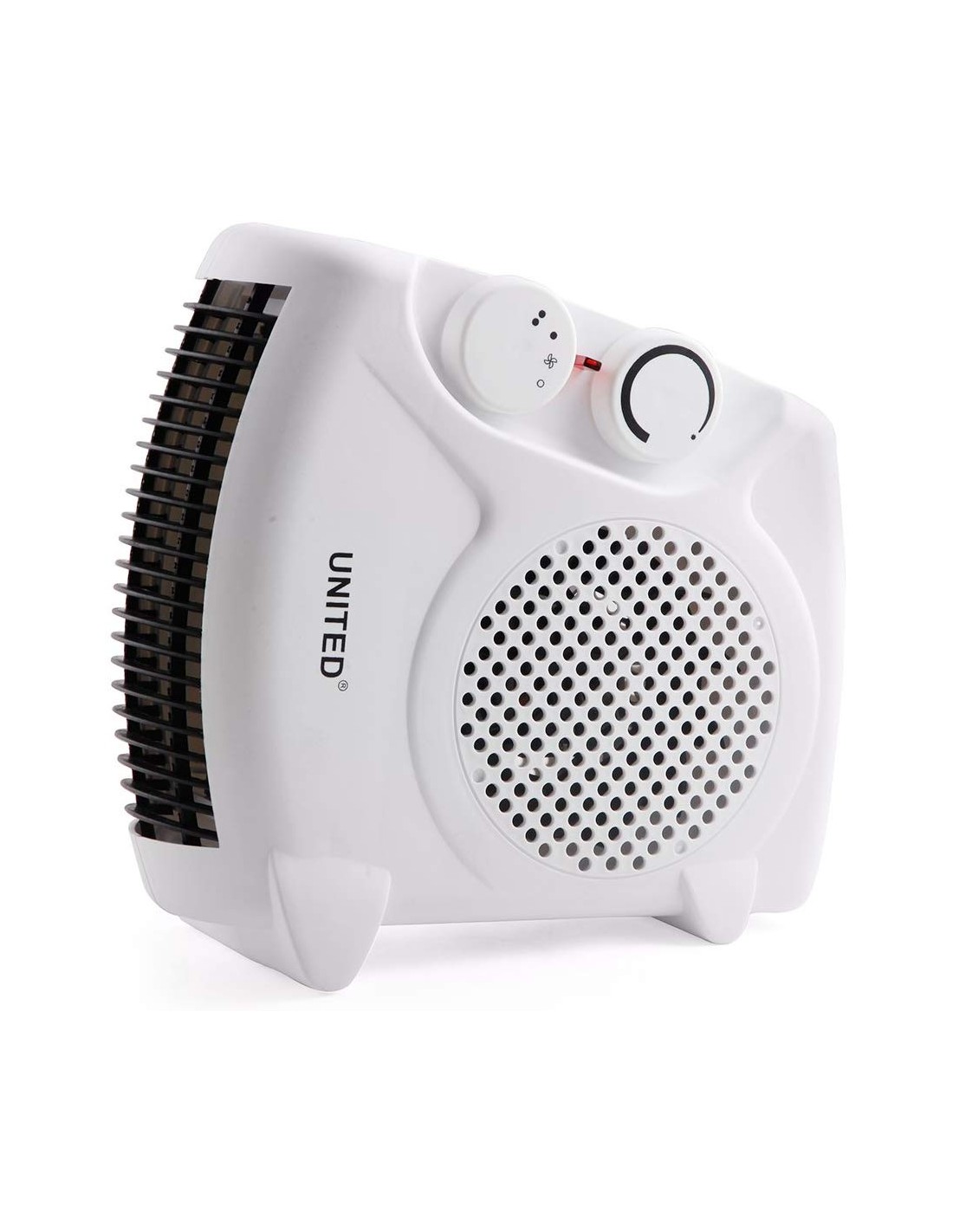 UNITED FAN HEATER is a two-in-one appliance: It works both as heater and mini-fan. The air circulation is forced through a fan, an elementary feature in the product, and works well in an AC power socket.