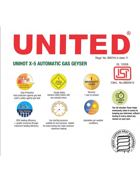 UNITED Gas Geyser (100% Copper Tank 6L Instant LPG Water Heater with Anti Rust Coating ISI Approved)