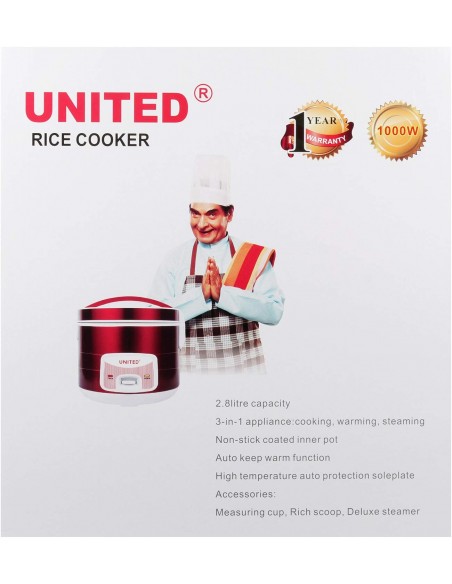 United UD-747 2.8L Electric Rice Cooker with Steamer & Warmer(Red)